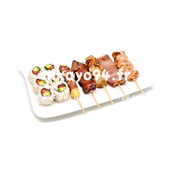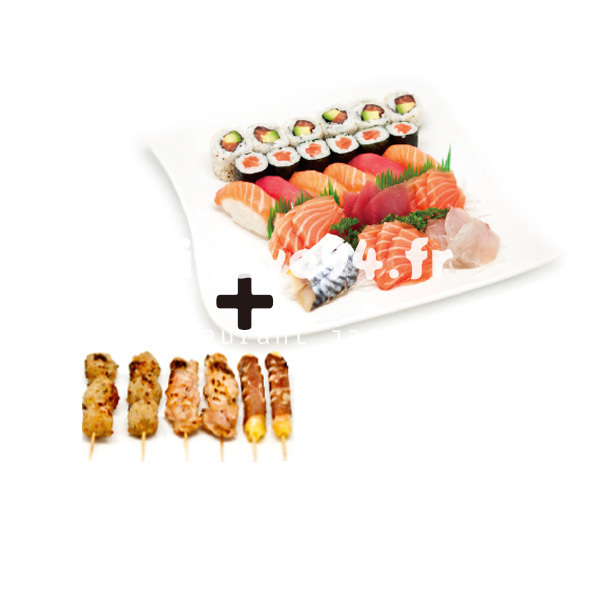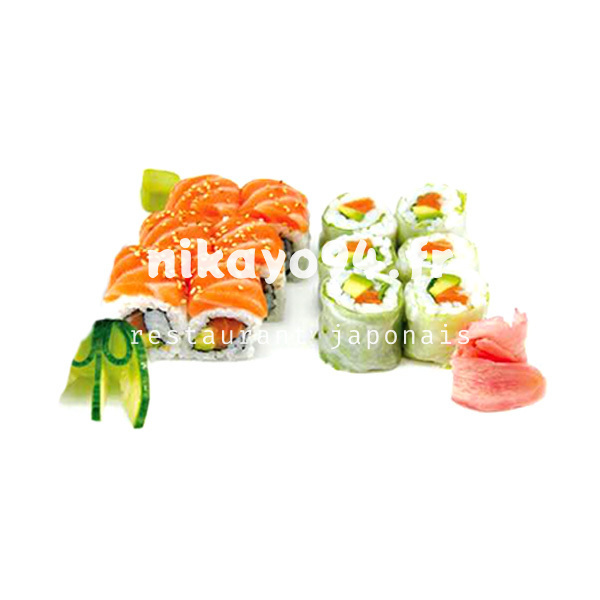 servis avec soupe, salade, sauce, wasabi, gingembre